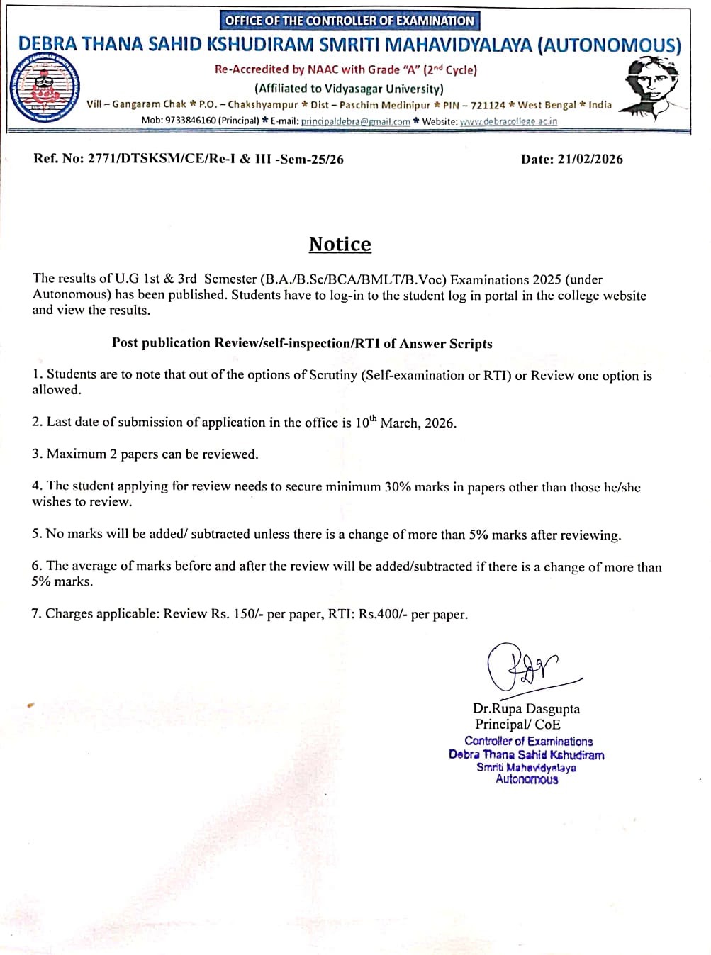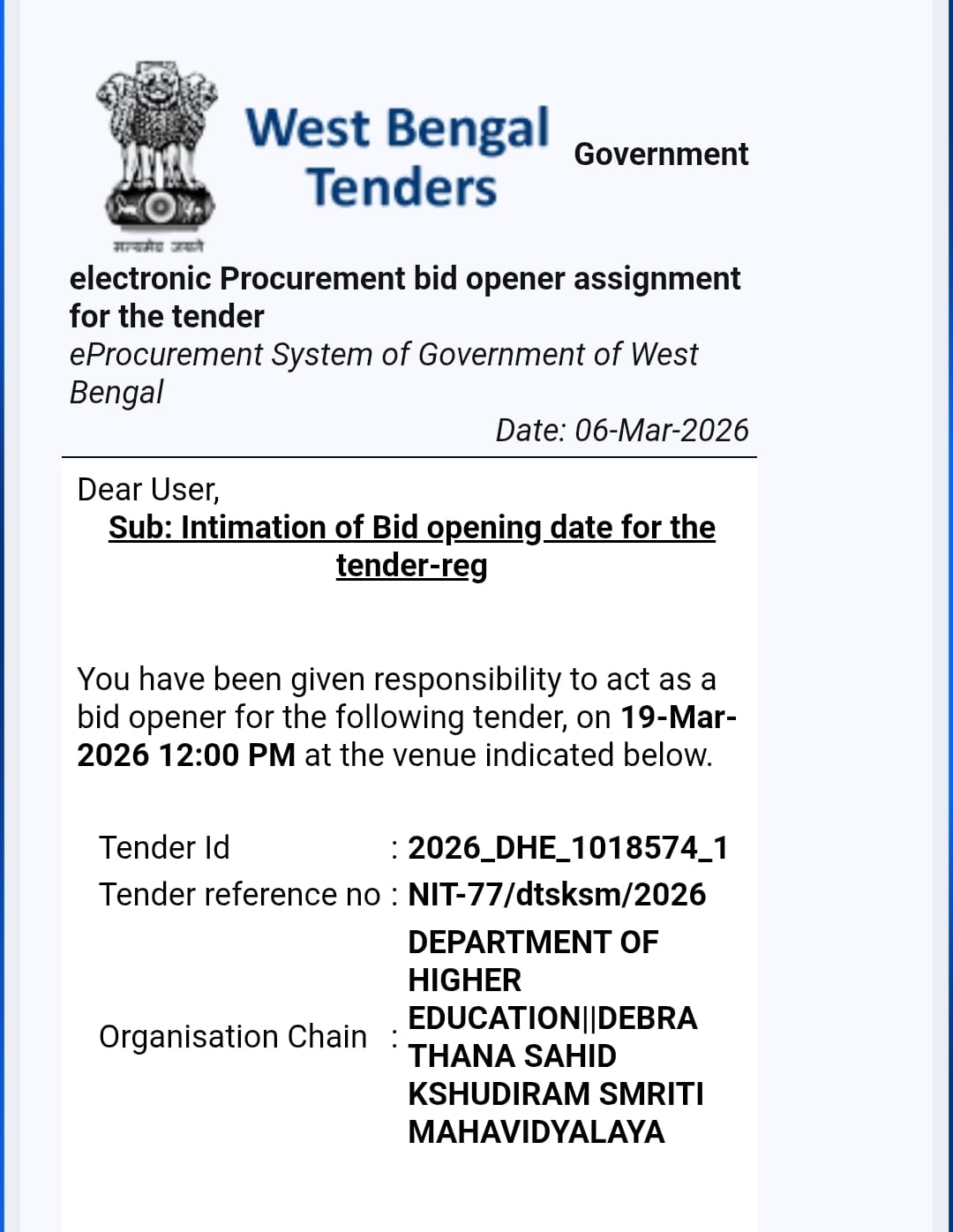 Debra Thana Sahid Kshudiram Smriti Mahavidyalaya was established with a motto ‘education, enlightenment and character’. Its chief objective is to kindle a light in the darkness of mere being.