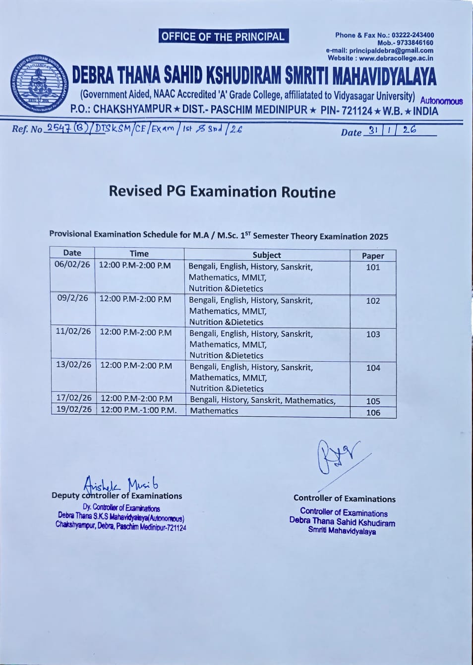 | 20 td > | 06 Feb 2023 | 28 Jul 2023 | ROUTINE-2022-23, 2nd, 4th & 6th Semester | Download |